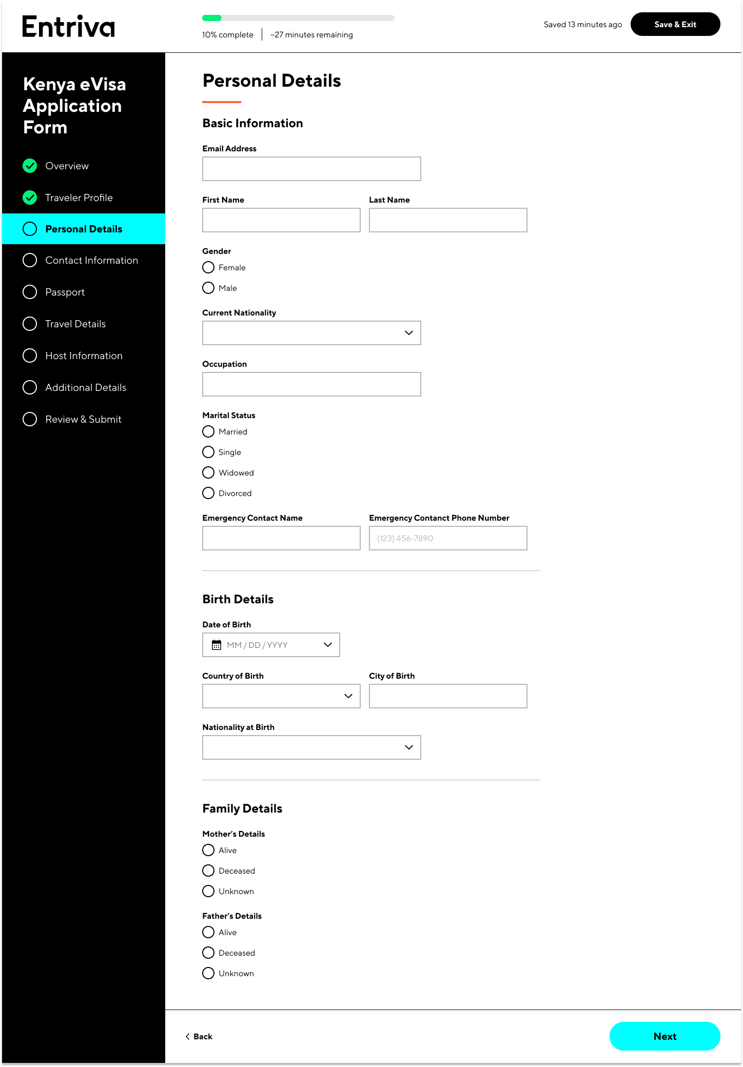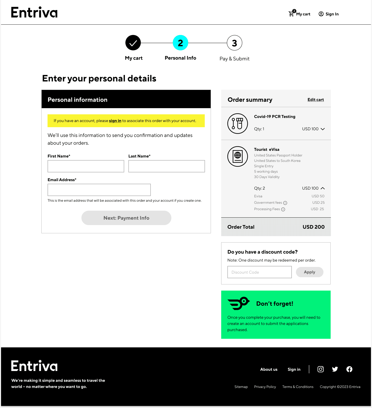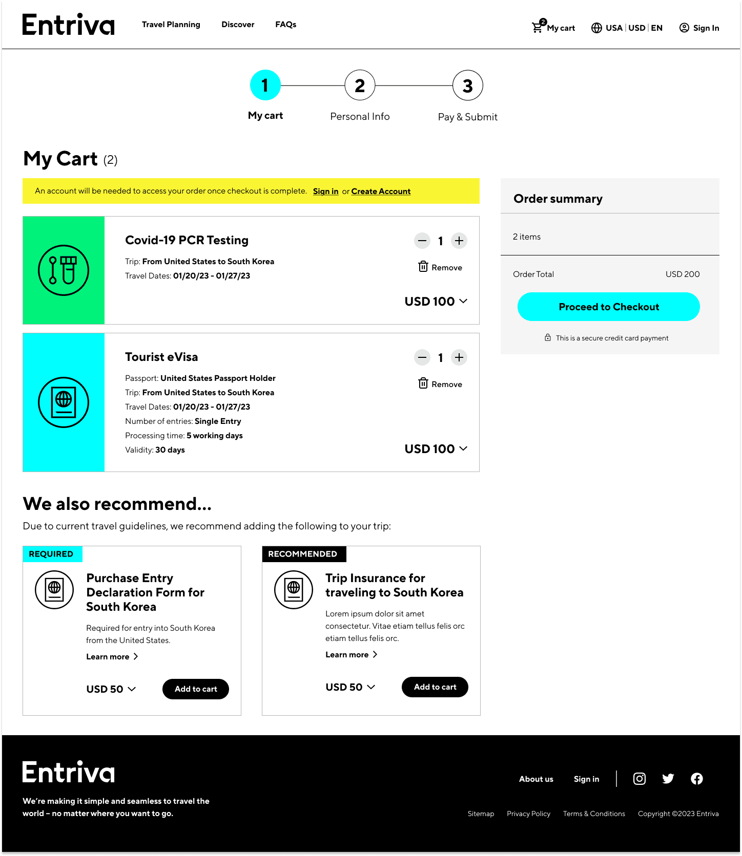 I collaborated on designing MVP recommendations for Entriva, a new direct-to-consumer product by CIBTvisas, a global visa and passport services company. Due to limited internal resources, CIBT partnered with WillowTree for user research, product validation, and UX design, while Siegel & Gale developed the brand identity, including naming, research, and branding guidelines.
